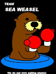 The time came when we were going to take him on his first sail. I brought him down to the dock to "help" me inflate the dinghy. He hadn't quite figured out the dock and walked off the side and sank into the water with a small splash. Instinct kicked in and he swam to the surface motor boating around in a panicked circle until I hauled him out by the scruff of his neck. Thus he was introduced to the sea; oddly it would take another year before he would go swimming...